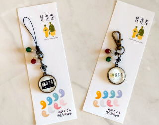 「小泉八雲とセツ」のキーホルダー/ストラップ 天然石のメノウ付健康長寿・家庭円満を願って!